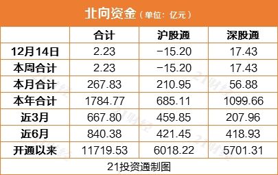 北向资金重新回流,今日净买入2.23亿元。其中,沪股通净卖出15.2亿元,深股通净买入17.43亿元,同样呈现深强沪弱态势。