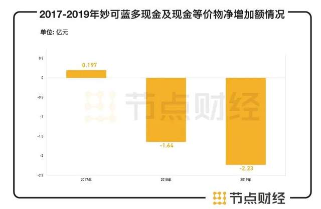 往前追溯,2017-2019年,妙可蓝多业绩很是惨淡。净利润只有428万元、1064万元、1923万元,扣非后主业只在2017年赚了111.4万元,2018年和2019年均亏损上千万,现金及现金等价物净增加额为1971万元、-1.64亿元、-2.23亿元。
