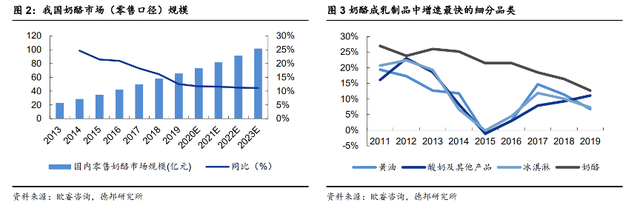据德邦证券研究报告,2019年我国零售奶酪终端市场规模约65.5亿元,同比增长12.7%,是乳制品中增速最快的细分品类。