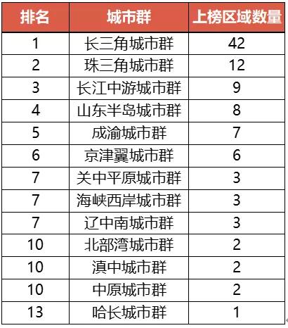 具体来看,上榜区域最多的长江三角洲城市群,是“一带一路”与长江经济带的重要交汇地带,也是中国经济最发达、城镇集聚程度最高的城市化地区,被视为中国经济社会发展的重要引擎。长三角城市群以电子、汽车、现代金融等产业为核心,致力于成为具有全球影响力的科技创新高地,全球重要的现代服务业和先进制造业中心。