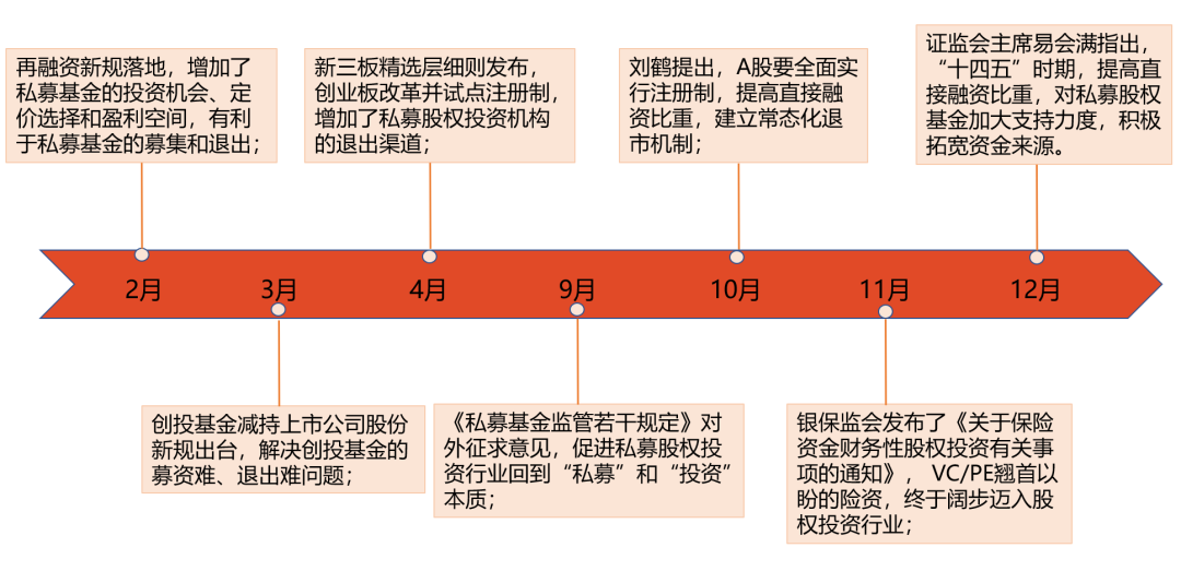 尽管疫情爆发使得股权市场募资陷入低谷,但是在困难和危机时期,往往是政策调整的好时机。今年以来政策利好频传,市场对私募股权的支持力度十足。一系列重磅政策组合出台,体现了政策的一致性,表现了监管层希望加强直接融资的决心,而退出渠道更加通畅,进一步鼓励长期投资和价值投资。