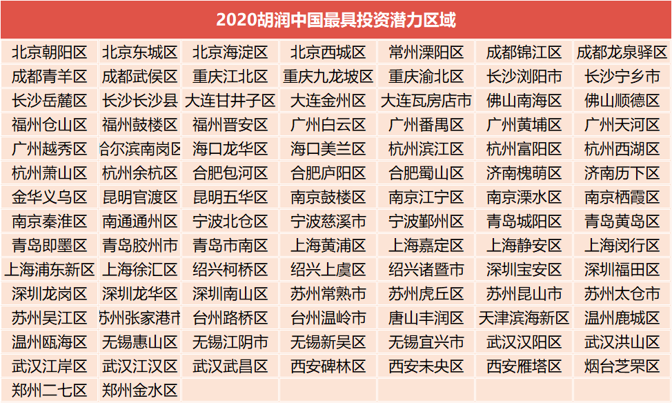 图6:《2020胡润中国最具投资潜力区域百强榜》(排名不分先后)