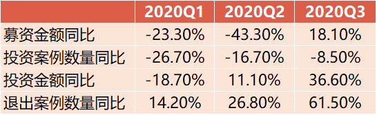 图1:2020年前三季度私募股权“募投退”情况