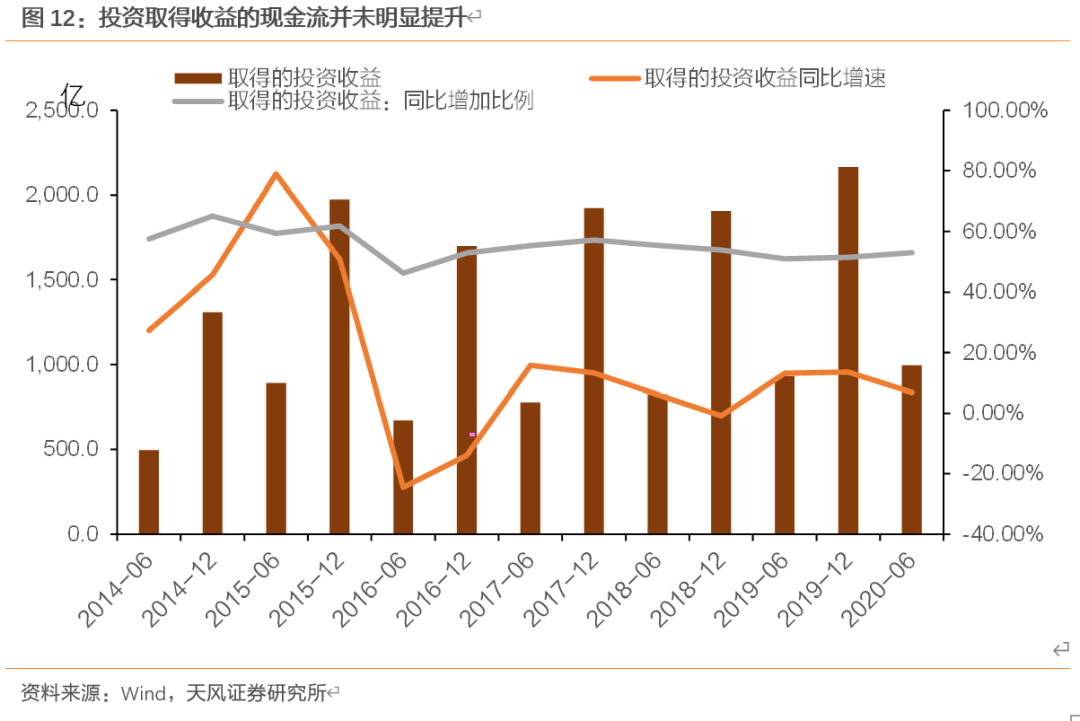 进入2020年,在疫情冲击影响之下,经济承压,再融资边际宽松、逆周期调节之下城投平台作为其抓手投资支出明显多了起来,对应到报表即投资现金流出同比增加的平台变多了;与此同时,投资现金流量净额为正的平台占比进一步下降,整体从趋势上来看过往城投平台的资本投入并未明显产生现金回补。