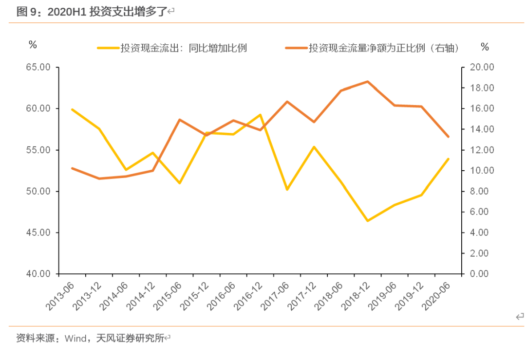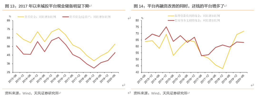 此外,对应看到平台的投资支出,2020H1由于再融资宽松,逆周期稳增长政策刺激,确实投资支出同比增加的城投增多了。