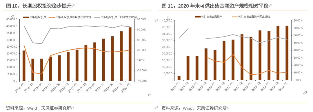 在过去几年当中,城投平台谋求转型发展一直是防范化解隐性债务风险、缓解财政压力的应有之义,一方面各区域对数量较多的平台进行整合,统筹投融资管理以约束无序融资、提升投资效率并降低融资成本;另一方面,平台也在业务上寻求经营性转型,包括进行产业类投资或是收购上市公司(或是为招商引资带动区域发展、或是协同自身业务发展),体现在报表上则可以看到近年来长期股权投资以及可供出售金融资产稳步提升(2020年来长期股权投资进一步提升)。