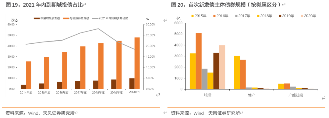 在这个变化趋势当中确也孕育着风险:一方面直融占比的提升本身就具备相对脆弱性,其容易受到政策以及市场流动性的扰动,另一方面尽管2021年内整体到期压力相比过去两年并未有明显提升,但是在当前脆弱的市场情绪之下,局部区域直融占比偏高的平台在流动性转圜的过程中或有一定压力,但这其中需进一步结合原有债券非银参与程度,在今年流动性大幅宽松的背景下,城投一级发行很多由当地银行包揽,这类流动性滚续相比受市场影响更大的非银而言更为稳定。