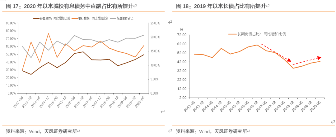 此外,在今年再融资边际宽松,非标转标并且各地方政府均出文压降高成本融资(在上半年更多就以直融来接了,或者直接偿还掉),可以看到城投整体直融占比有所提升(2017-2019H1 是呈现下降趋势的),这一定程度加大了债务结构端的不稳定性。