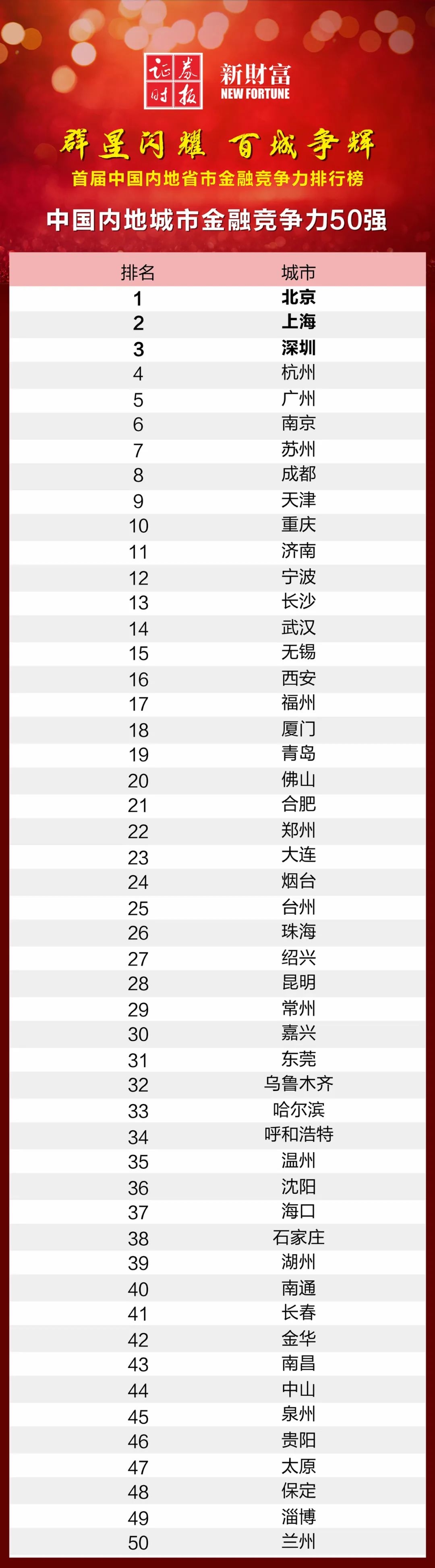 中国内地省市金融竞争力榜单发布,看看你的城市排第几?
