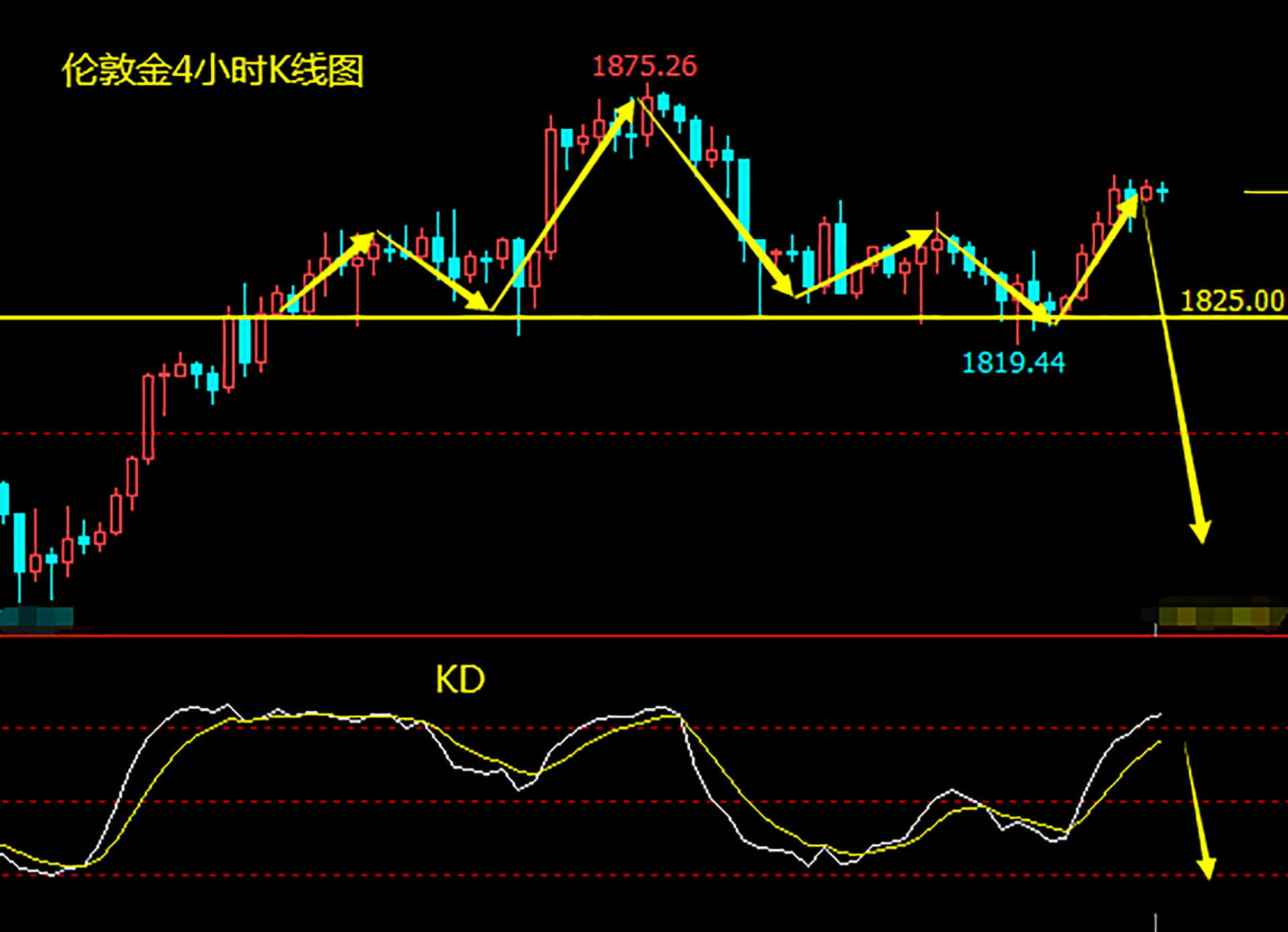 伦敦金4小时K线形态已经完成了头肩顶形态的构建。短期的压力位位于1875一线(前期高点),短期的支撑位位于1825一线(头肩顶颈线位置)短线K线价格于1825上方做整理走势。KD指标位于高位,预计后市...