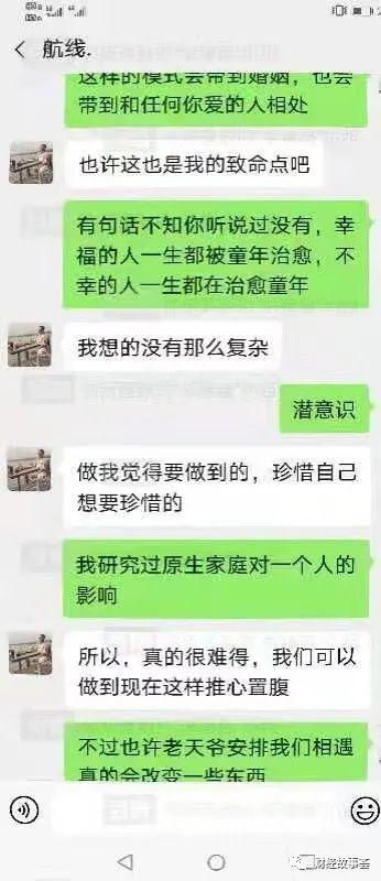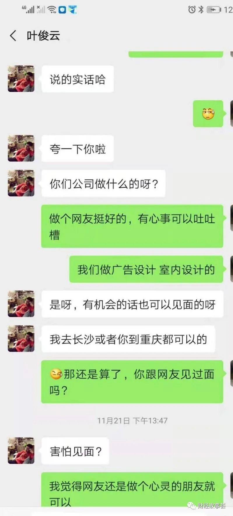 双方越聊越投机,索性加了微信,关系愈发火热,从生活中的寻常琐事,到深埋心扉的情感秘密,经常聊到深夜,她逐渐默认对方为自己的真命天子,并对他言听计从。