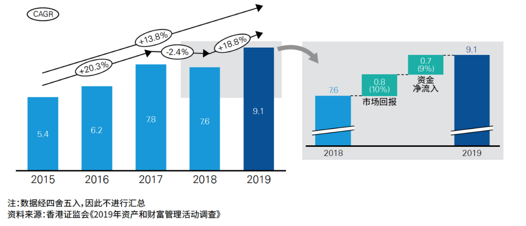 但令市场意外的是,根据香港证监会《2019年资产和财富管理活动调查》,2019年香港私人财富管理行业的资产管理规模较2018年增长18.8%。