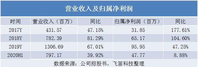 据招股书最新数据,2020年上半年,公司实现营收7.97亿元,同比增长39.92%,同期归属净利润为4777万元,同比增长8.88%,公司收入不存在明显的季节性波动特征,因此上半年业绩增速下降明显。