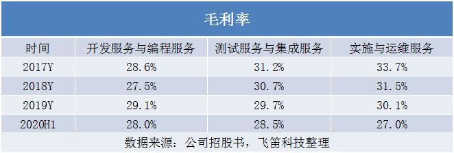 开发与编程服务是公司核心业务,也是软件技术外包行业的最大需求服务类型,随着市场竞争的加剧,2018年毛利率有所下降。2019年毛利率较2018年上涨1.6个百分点,主要是当期公司对主要客户阿里巴巴公司提高了服务价格,同时公司加强薪资成本控制,进一步提升了毛利率水平。