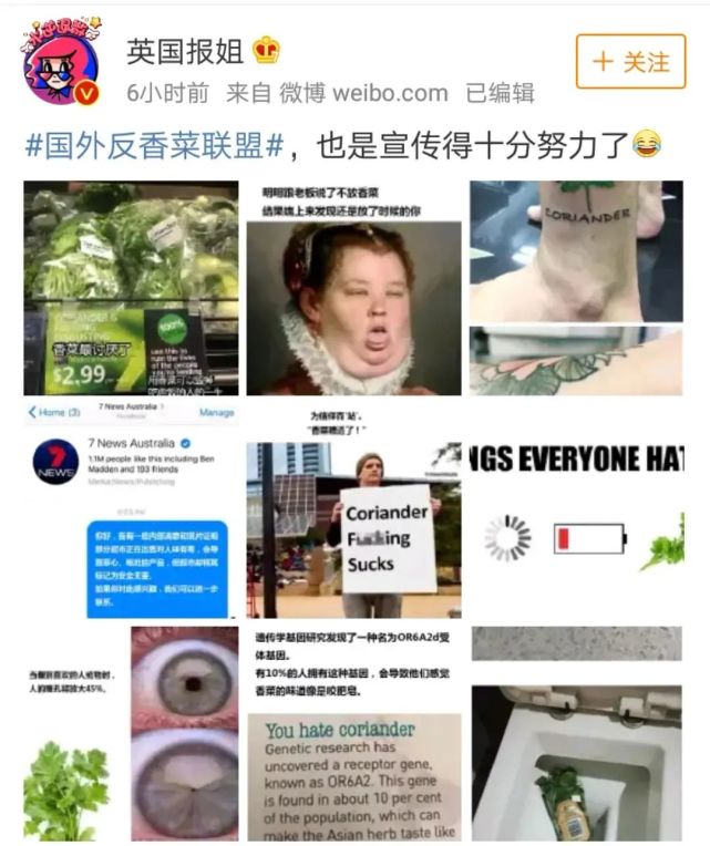 通过使用现代科学仪器对香菜叶子的化学成分进行分析,科学家们发现了大约有40多种化合物,其中82%都是醛类,17%是醇类,所以醛类化合物是香菜强烈气味的主要来源。冷门知识:醛类化合物不存在统一的可形容味道,基本上是“一千个人鼻子中就有一千种味道”。所以就不难理解大家对于“香菜”的态度,喜欢的人追捧,不喜欢的人虽厌恶也猎奇。存在对立的双方,就会产生话题,香菜的热度也越来越高。