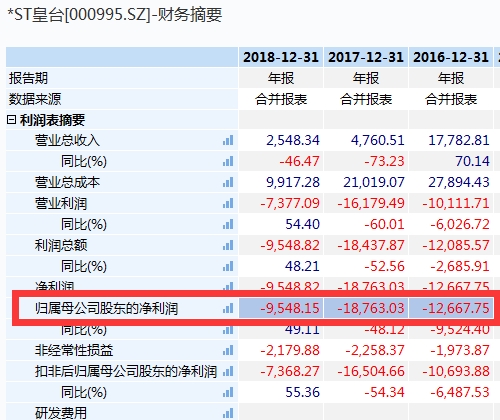 去年5月,皇台酒业发布《甘肃皇台酒业股份有限公司关于股票暂时上市公告》。该公告显示,皇台酒业于2016年、2017年、2018年连续三个会计年度经审计的净利润为负值,且2017年、2018年经审计的期末净资产连续为负值,根据深交所相关股票交易规则,深交所决定对公司股票自2019年5月13日起暂停上市。