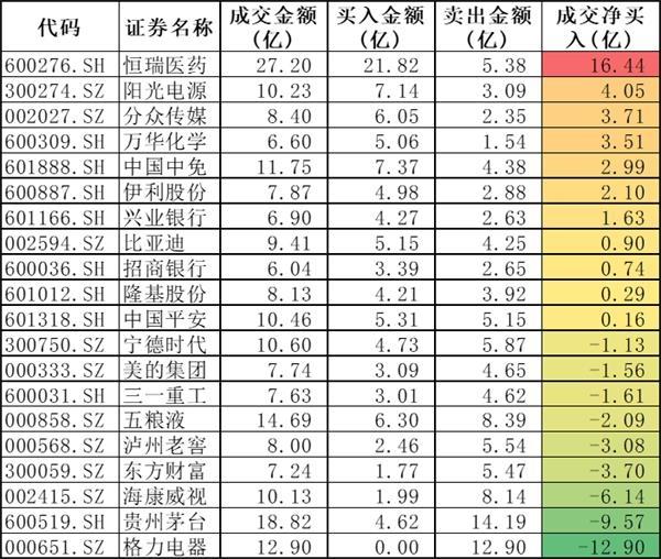 昨日十大成交股榜单中,恒瑞医药在当天股价大涨近8%的同时,获北向资金大幅净买入16.44亿元。这是自2014年互联互通机制开通以来,恒瑞医药首次获北向资金单日净买入超过10亿元。