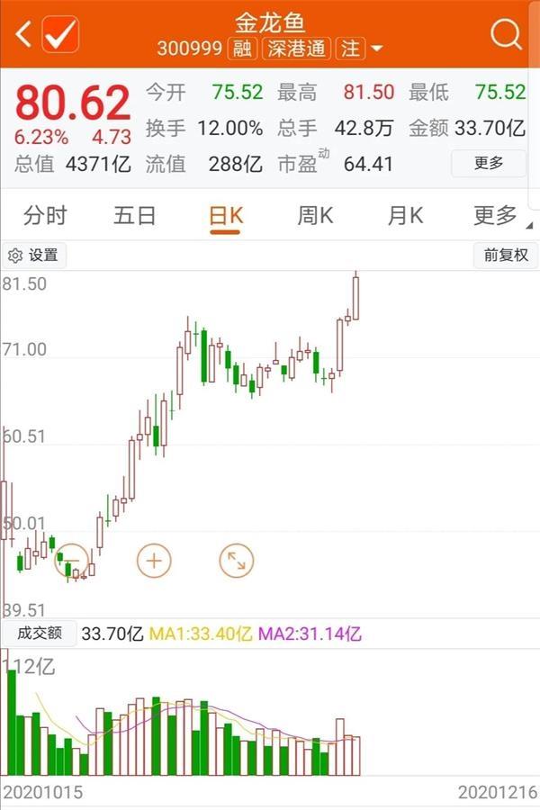 随着各方合力追捧,金龙鱼上市后股价持续走高,截至今日午间收盘已较上市首日开盘价上涨66%。特别是周一纳入深股通名单后,金龙鱼股价加速上扬,本周以来累计涨幅已达16.84%。