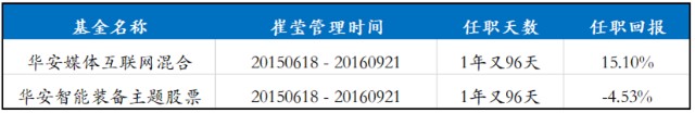 但在崔莹管理的基金中,还曾有这两只基金的纪录,两只基金因为业绩不佳被“甩包”。