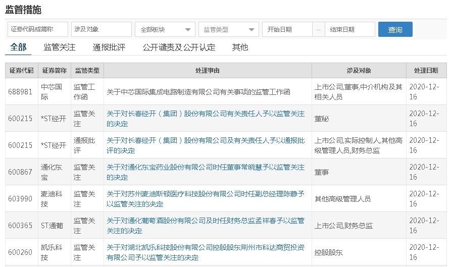 上交所发布关于中芯国际集成电路制造有限公司有关事项的监管工作函,涉及对象包括上市公司、董事、中介机构及其相关人员。