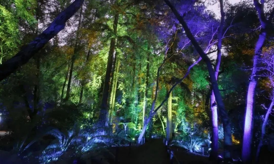 从户外色彩缤纷的山林,到温室内充满活力的沙漠仙人掌,每个场地特定的装置体现了独特的功能,灯光、环境声音和电子音乐的原始组合相得益彰。