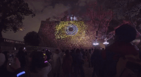 游客们将观看到一场包含9个章节的故事秀,梦幻的音响和灯光与大阪城公园的自然景观相融合。故事讲述了一次冒险之旅,游客们必须与“欢乐精灵”合作,帮助来自未来的少女 Akiyo找到回家的路。