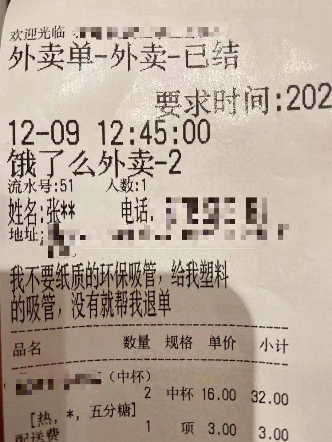 “不要纸吸管,否则帮我退单!”