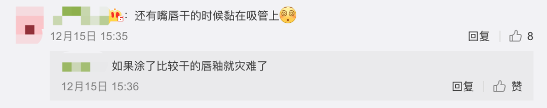 “嘴唇干的时候直接黏在吸管上”: