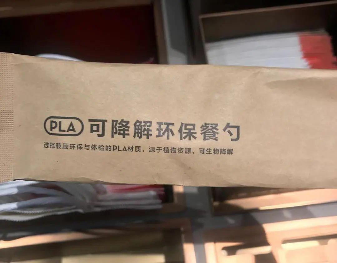 喜茶很早就在门店使用了纸吸管,从12月初起,喜茶开始在全门店推行PLA吸管,与纸吸管并行使用。与此同时,店内的勺子也换成了生物可降解材质。