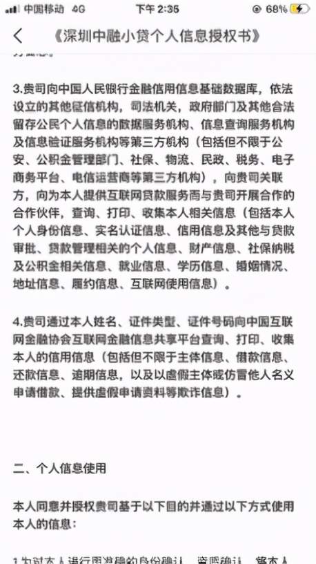 WEMONEY研究室从备用金开放的入口进行申请时显示,需要填写个人身份验证。根据服务协议,中融小贷会向央行查询个人征信。