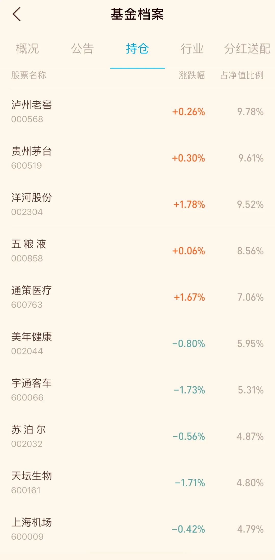 那么怎么看一只基金投资了哪些股票呢?方法很简单,我们可以查看基金的十大股票持仓。比如这只基金易方达中小盘混合(110011)。虽然名字是中小盘,但是我们看它的股票持仓基本上都是泸州老窖、贵州茅台、洋河股份等大公司股票,所以这是一只主要投资于大盘股的基金。