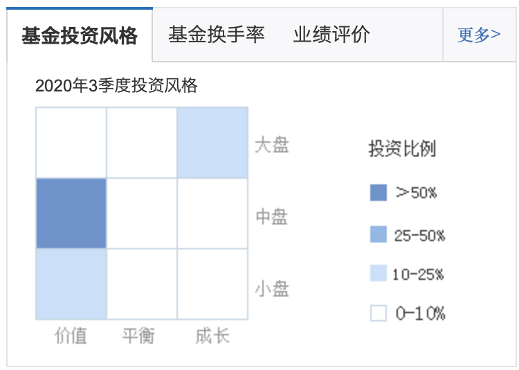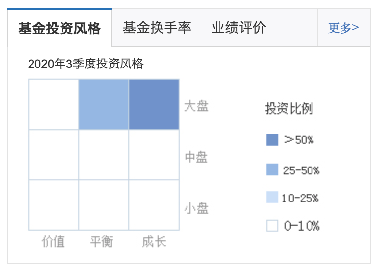 除去我们自己查看基金的十大股票持仓,来判断基金是投资的大盘股还是小盘股之外,我们还可以看基金的投资风格箱。