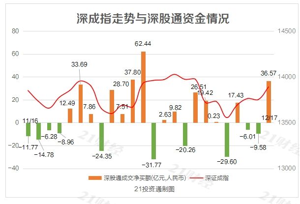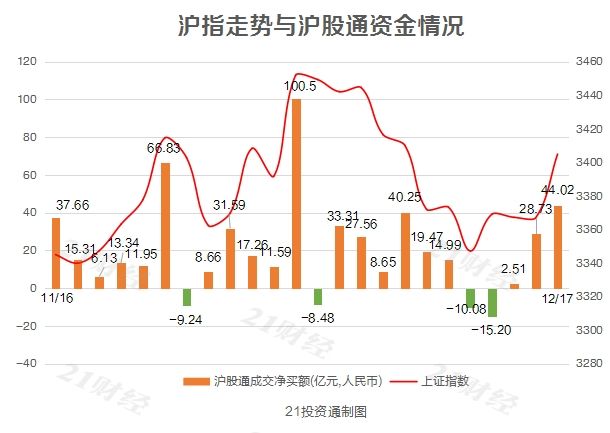 北向资金全天单边净流入,合计净买入达80.59亿元。其中,沪股通净买入44.02亿元,深股通净买入36.57亿元。值得注意的是,12月份以来,北向资金以净流入为主,总体呈现“红肥绿瘦”特征,至今合计净买入364.07亿元。