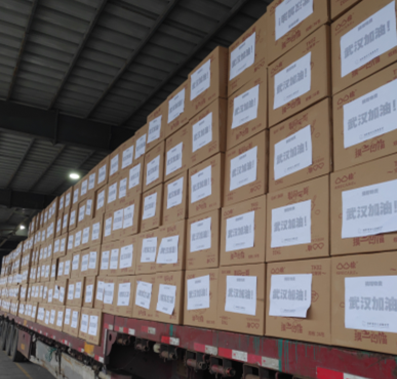 我记得接到过一个电话,电话那头说着说着就哭了,她就说我也是女人,感谢你们做的,我有一批卫生巾和纸尿裤想捐给武汉,能不能加入你们?