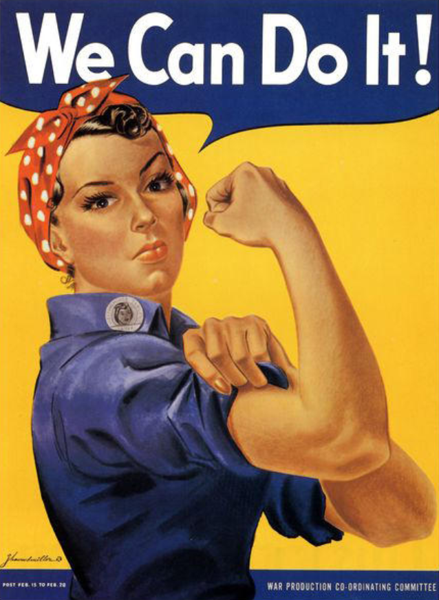 所以上个世纪的工厂车间里,女性身上是没有明显的性别特质的。比如这张海报中的姑娘,像男性一样,强硬,威严,目标明确。这个形象你今天依然可以在一些工业企业中看到,比如一些主打“女强人”人设的CEO。