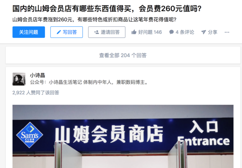 截止目前,知乎中关于“山姆会员店260元会费是否值得”的讨论,在网友的热情安利之下,已经实打实的成为了“种草”山姆的集中地。