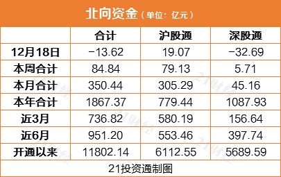 北向资金先扬后抑,早盘单边净流入,午后单边净流出,全天合计净卖出13.62亿元,其中,沪股通净买入19.07亿元,深股通净卖出32.69亿元。
