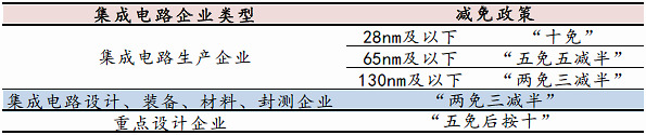 所得税减免助力集成电路产业高速发展。2020年8月4日,国务院发布《新时期促进集成电路产业和软件产业高质量发展的若干政策》,大力支持集成电路产业和软件产业的高质量发展。该项通知中提到多项关于集成电路企业所得税减免的政策,集成电路行业是资本密集型行业,投厂生产通常需要大量的资本开支,同时回报周期较长,对集成电路企业的资金实力有较高的要求。该项通知对我国集成电路全产业链企业都进行了不同程度的所得税减免,缓解了大批集成电路企业的资金压力。