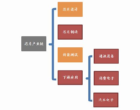 芯片,有广义和狭义之分,广义芯片包括了集成电路、传感器、分立器件、光电器件产品,狭义芯片单指集成电路。芯片产业链的上游是材料和设备商,中游是半导体生产的三道工序,分别是设计、制造和封测,下游是各种形态的具体产品,包括通讯设备、消费电子、汽车电子等。