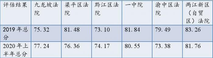 一方面,六家试点法院2019年全年和2020年上半年两个评估时段的结果全部达到70分以上,一中院、两江新区(自贸区)法院成绩均保持在80分以上。另一方面,被评估的六家法院分数相差在9分以内,得分相对均衡。
