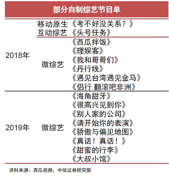 而在长视频领域,除了老对手B站,西瓜面临的还有优爱腾和芒果这四个强劲的对手,2018年8月西瓜视频高调宣布进军自制综艺领域,称将拿出40亿元打造综艺IP。高举高打,重金支持,符合字节跳动一贯做法。然而高调进攻之下,成果寥寥。甚至很少人知道,西瓜视频还出过不少的综艺节目。