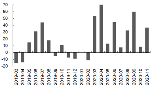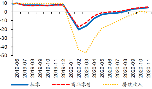 会议对积极的财政政策定调并未改变。从11月财政预算数据来看,短期仍保持韧性,12 月仍有约2000 亿用于补充中小银行资本金的新增地方债发行,有望对实体经济继续形成一定的支撑。在防范地方政府隐性债务的要求下,早前预期财政政策明年回归常态,但此次会议重申“积极”,我们预判中央或地方政府仍将继续通过专项债或转移性支付等方式继续提振对于国家重点领域以及涉及供应链安全领域的支持。
