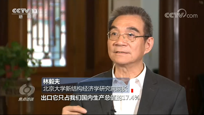 北京大学新结构经济学研究院院长林毅夫说:“看具体的数字,2019年出口只占国内生产总值的17.4%,也就是说在2019年82.6%的国民经济是在经济体内部消化掉了,已经在国内循环了。”