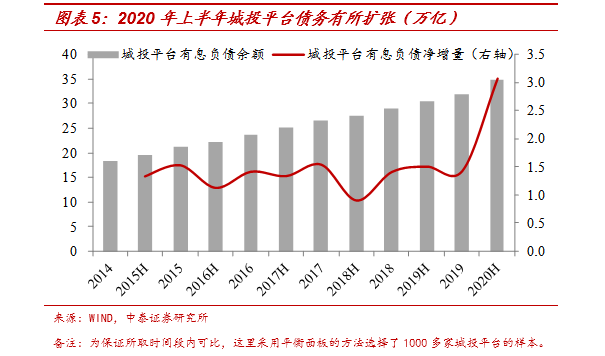 今年因为疫情冲击,上半年货币信用双宽松,地方融资平台的负债也是明显增加的。我们统计了2000多家城投平台的债务规模,今年上半年城投公司有息负债余额已经扩张至47万亿,相比去年年末增加了3万多亿。如果用平衡面板来测算的话,今年上半年城投公司的债务增速也上升到了14.8%。在债务风险有所上升、地方债终身问责制度下,明年地方隐性负债的监管政策可能会较严格。