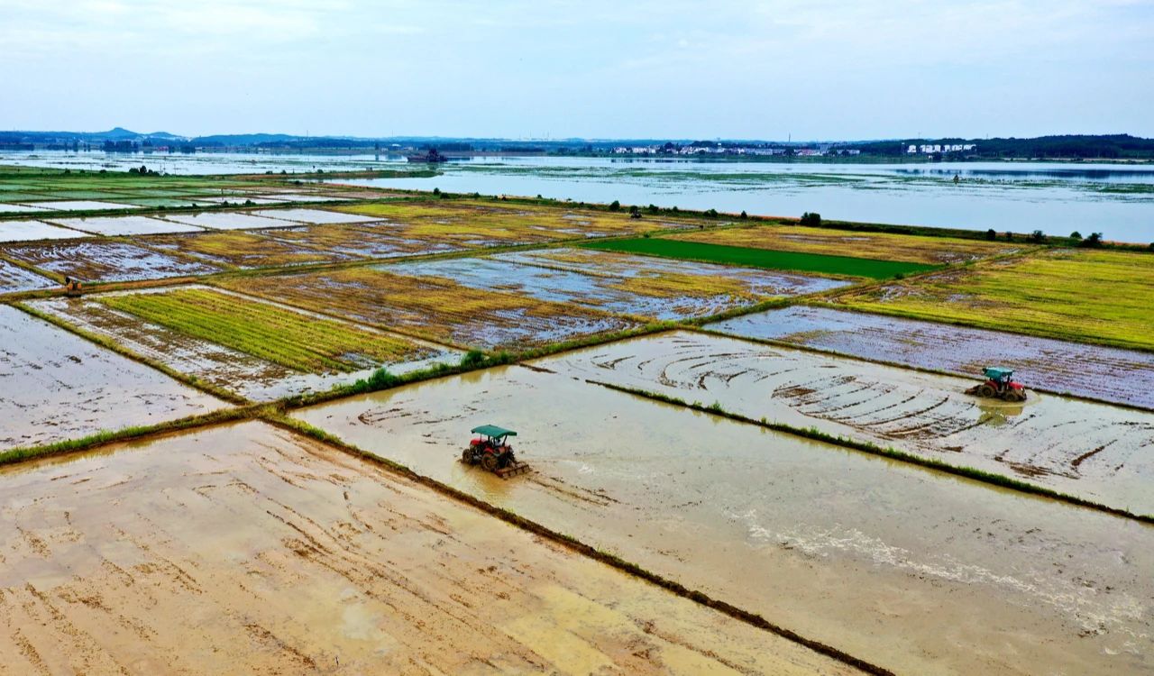 △2020年7月30日,江西省吉安市吉水县醪桥镇袁家村早稻收割后,村民们正忙着翻耕农田,按时播种晚稻,确保今年粮食丰收。
