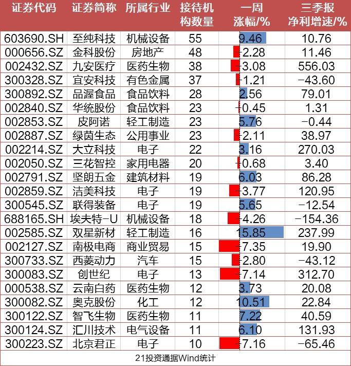 接待机构数量方面,半导体龙头至纯科技(603690.SZ)成为最受机构青睐的个股,获55家机构扎堆调研。