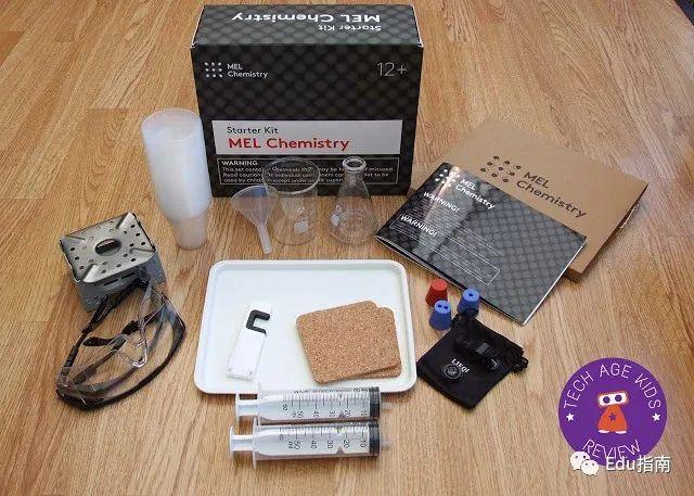 具体来看,成立初期,MEL Science提供的是一套寄到孩子家庭的“化学实验工具套装”,MEL Science Kit,比如下图这样一套化学实验工具,以及可以在手机上观看的实验课程。