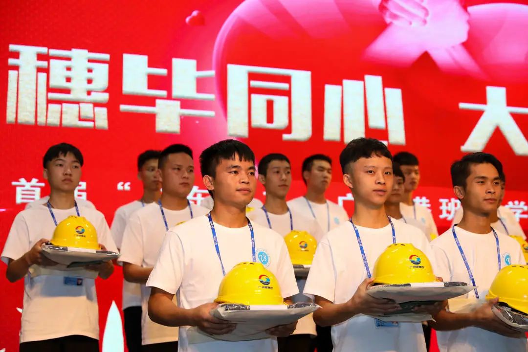 “广州港”班首届毕业生入职典礼,前排左一为秦鹏