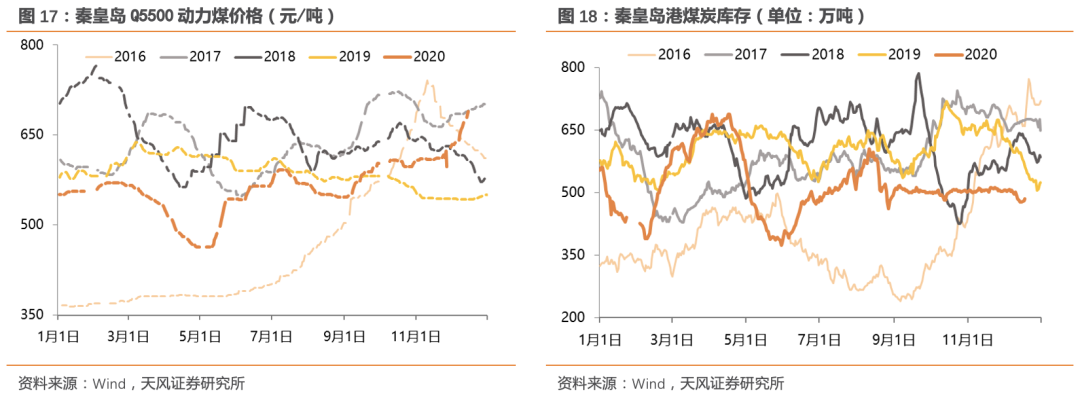 煤价方面,截至12月15日,秦皇岛港动力末煤(5500K)平仓价为689元/吨,较去年同期增加146元/吨,同比变化+26.9%,较11月30日630元/吨环比变化+9.4%。