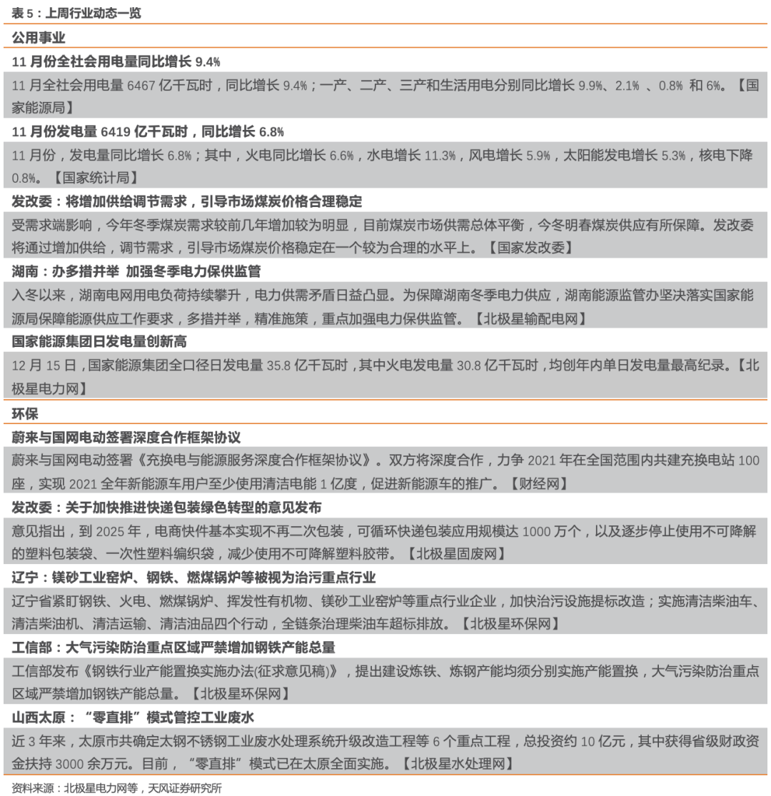 煤价短期上行压力增大,但对火电成本端影响持续性不强。短期来看,此次“限电”事件的背后是极端的严寒以及产业的复苏,这整体在需求端给动力煤价带来了进一步上行的压力。与此同时,在限产及进口限制压力下煤炭供给端持续疲软,11月煤炭产量同比增速仅0.4%,进口量同比降幅达43.8%,12月以来秦皇岛Q5500动力煤价格上行斜率陡峭,截至12月15日平仓价为689元/吨,同比增加26.9%。